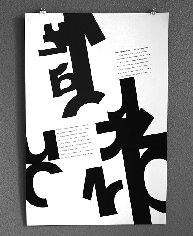 I took the opportunity to explore observations I made within my past business relationships but also within myself as a person. I designed these posters to illustrate the journey for Citizen 0753 as he experiments with what he had come to believe was fact in order to redefine himself.