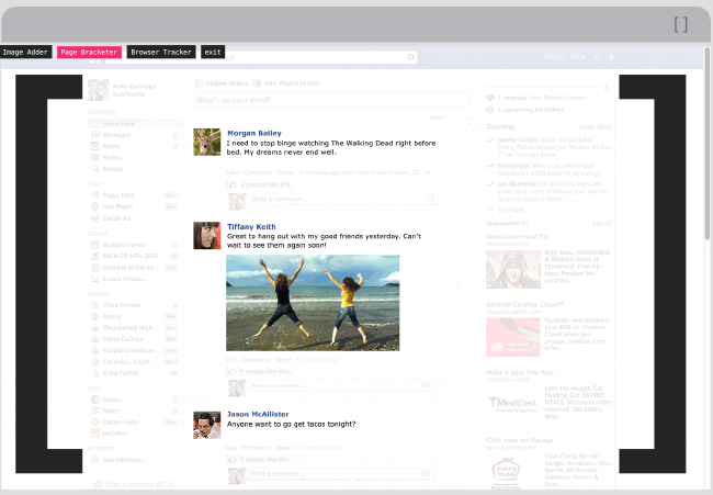 The Page Bracketer reduces the number of objects vying for attention by pushing unwanted clutter into the surrounding white space. The main variable can be edited by the viewer to include less or more of the page content.