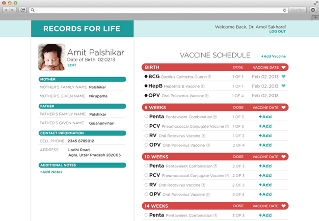 In 2014, The Bill & Melinda Gates Foundation established the Records for Life Contest to task the global design community with reimagining and redesigning child health records in both analog and digital forms. Based on the foundation's research, immunization forms in many countries did not serve it's function properly which lead to inaccurate information, loss of information, and lack of perceived value leading to incomplete records.