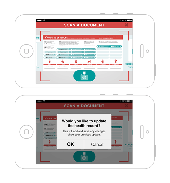 From our submission materials: Our proposal is a clear, adaptable, portable, durable, and valuable solution for both health workers and caregivers. With optical mark recognition, the form simplifies record keeping and allows for easy reproduction and digitization, adding scalability and redundancy in the medical data system. An initial cover photograph adds value to the record, and the promise of a final photograph creates an incentive towards completion of the vaccination cycle. Plus, when technology is available, text-message based reminders and information can help encourage family compliance and vaccination comprehension.
