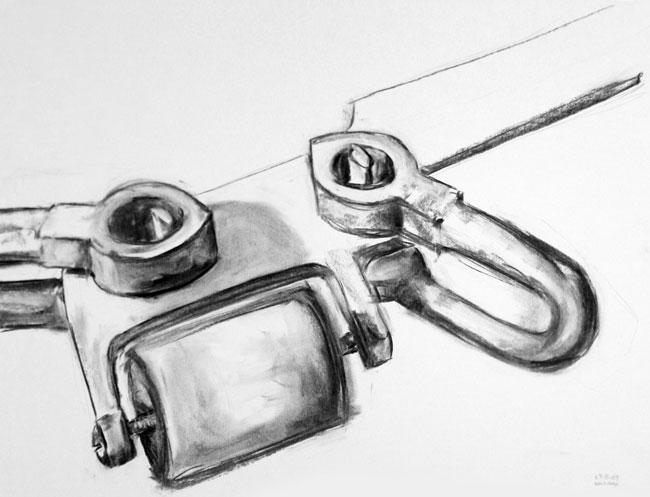 My parents live on an old farm and the barn contains equipment that you are not likely to see in modern farming. I found a cotton scale and decided to use it for this series of drawings.