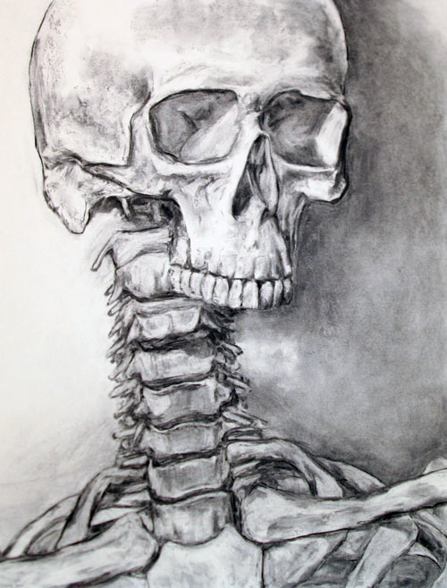 After a long break from drawing I decided to return to a familiar subject matter from college drawing classes. I borrowed the skeleton from my alma mater and began a daily drawing exercise that focused on observation and restricted my tools to charcoal and an eraser. Here are two of the finished drawings from those sessions.